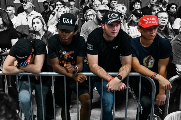 I know we’re all talking about why Democrats are losing young men to the “Manosphere.” And while many people come close when they talk about money and financial security (speaking from experience), I think what it really boils down to is the opportunity to be successful in this country—whether financially, to take care of your family, or status-wise, to look strong instead of weak and emasculated by “the others.”